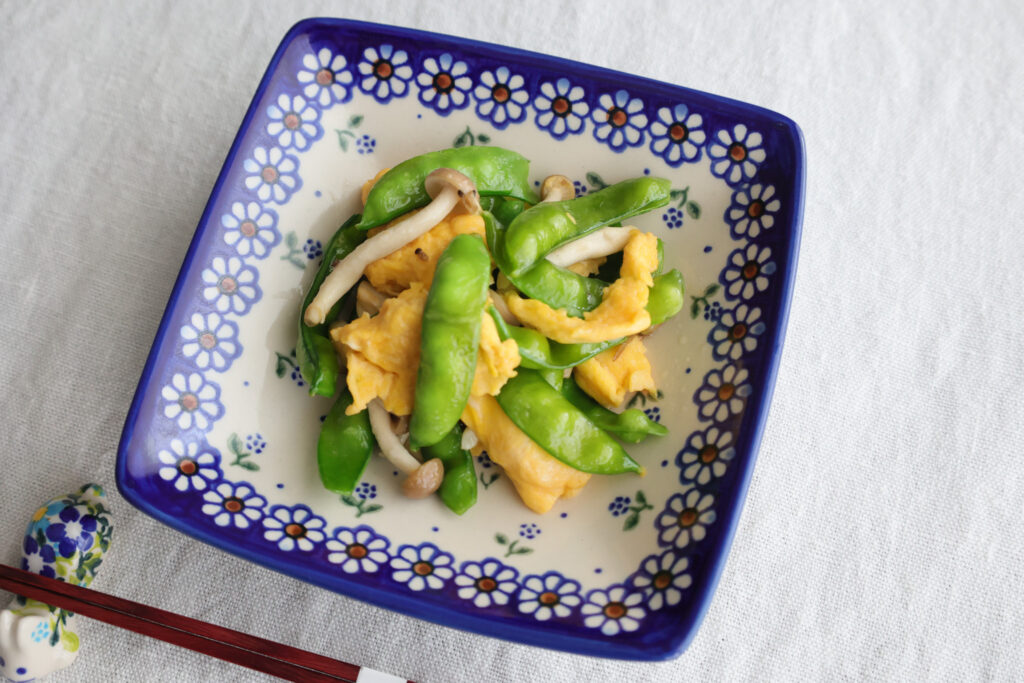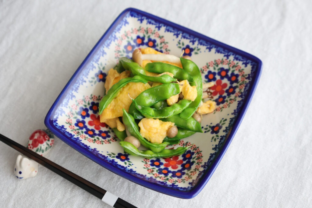シンプルに卵と、冷蔵庫に残っていたしめじも加えて炒め、タフィーボウルの小さいほうに盛り付けました。何でもない料理がなんかおしゃれに見える器で、とても重宝しています。鮮やかな緑色と卵の黄色も綺麗で美味しかったです。今度は是非グリンピースを使って豆ごはんを作ろうと思いました。豆ごはんは幼少のころからの大好物です。