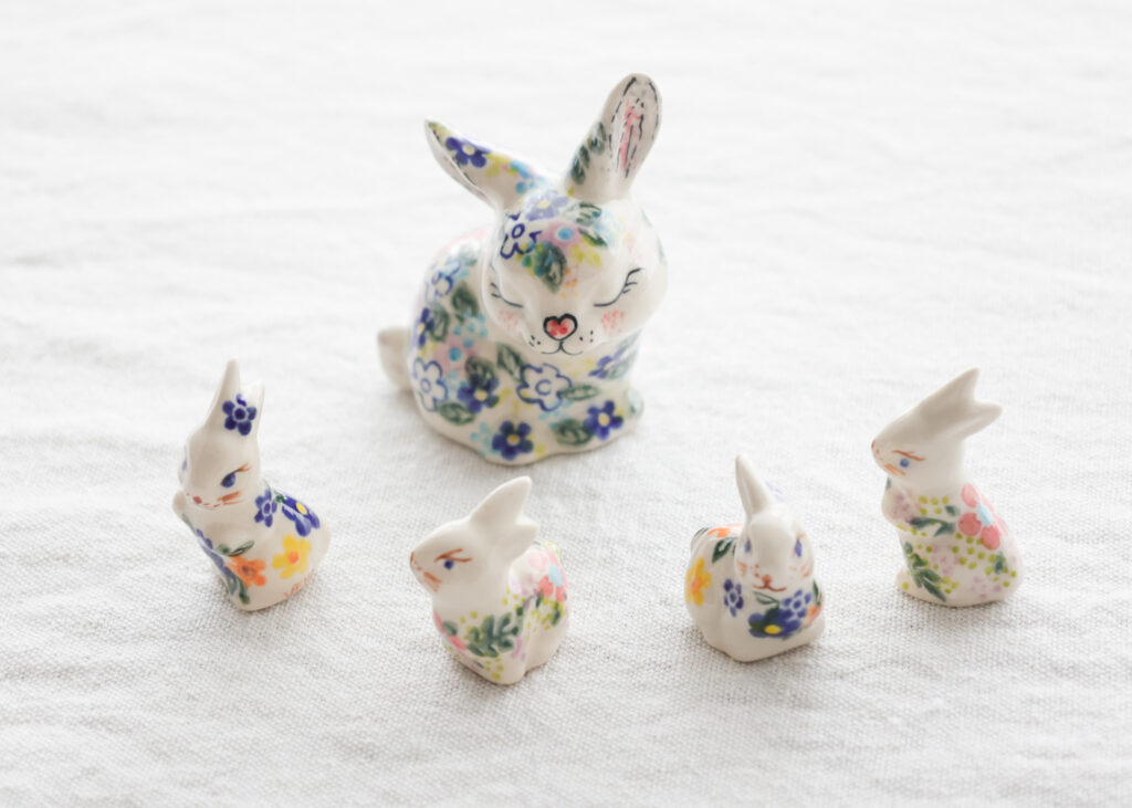 上の写真は、今回の新着の中で、特に注目を集めているうさぎ達です。新しく加わった目をつむったうさぎは、お昼寝中なのかわかりませんが、なんだかほっこりした気分にさせてくれます。